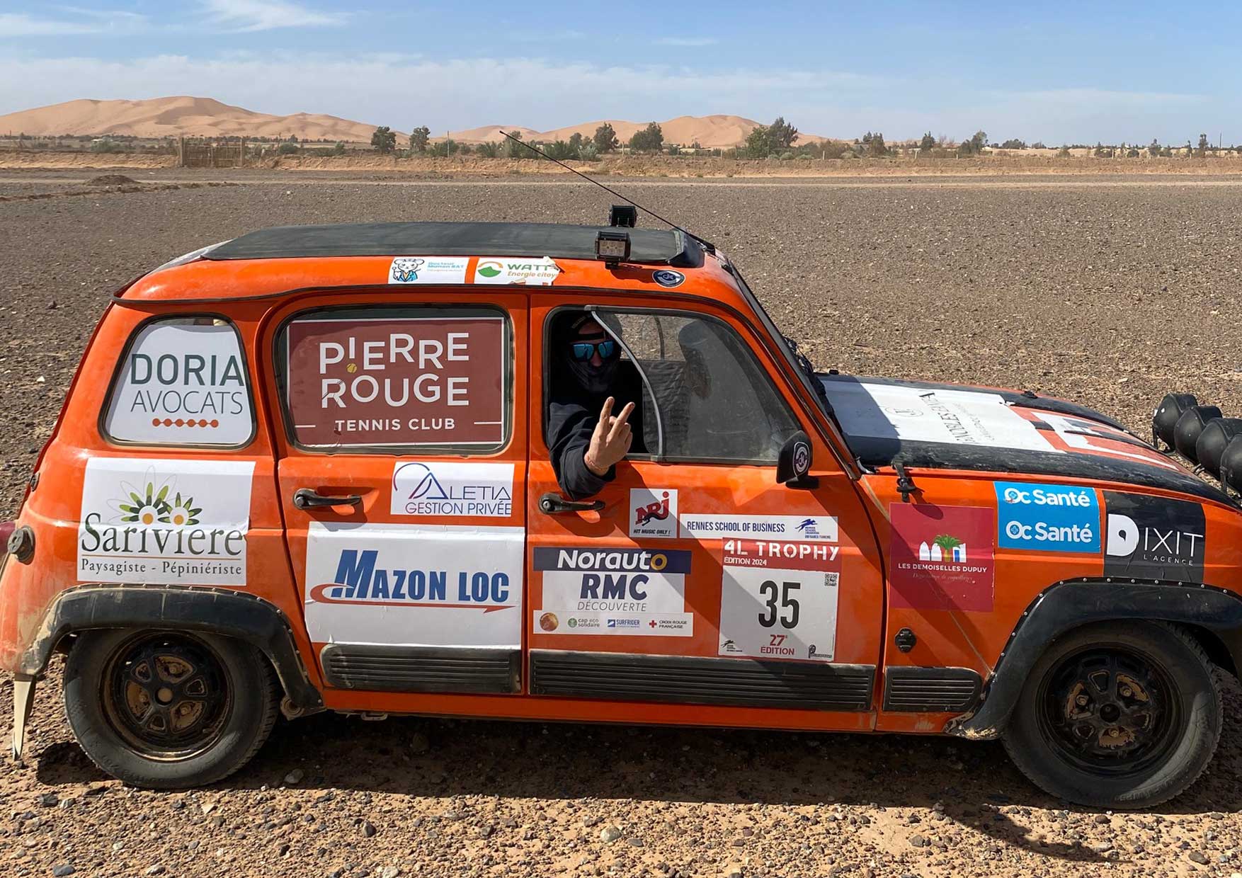 La course représente l’accomplissement d’un gros travail qu’on a mené de À à Z et la satisfaction de voir notre 4L traverser le désert marocain sans encombres. C’était aussi un sacré défi sportif avec une conduite compliquée parfois dans des passages très ensablés ou caillouteux.